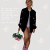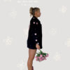 Chaqueta oversized en denim negro con bordado 100% en hilo mercerizado.