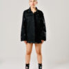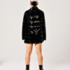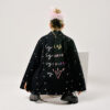 Chaqueta oversized en denim negro con bordado 100% en hilo mercerizado.
