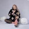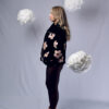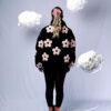 PUFFER JACKET “NO RAIN NO FLOWERS” FONDO NEGRO + FLORES ROSADAS”