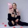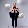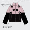 PUFFER JACKET “NO RAIN NO FLOWERS” FONDO ROSADO/NEGRO + FLORES NEGRAS”